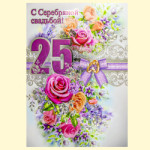 Поздравительная открытка "С Днем Серебряной Свадьбы! 25 Лет" 275 х 195 мм