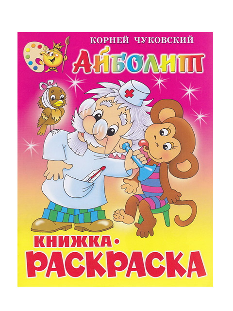 Сказка Корнея Чуковского "Айболит". На каждом развороте две картинки - раскрашенная и нераскрашенная (для самостоятельного раскрашивания).