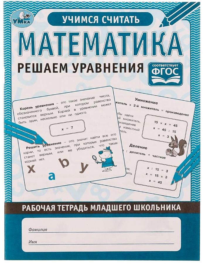 Рабочая тетрадь младшего школьника «Математика. Решаем уравнения» ТМ «УМка» станет отличным помощником для ребёнка в процессе освоения им новых знаний: