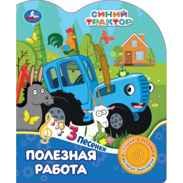 Музыкальная книга «Синий Трактор. Полезная работа» ТМ «УМка» станет прекрасным подарком для малыша: - 1 звуковая кнопка - 3 песенки из м/ф (фрагменты): «Что ты делал, Синий Трактор?», «Раз, два, три, четыре, пять, будем мы считать», «По полям» - интересный сюжет - красочные иллюстрации с любимыми героями - фигурная вырубка Ребёнок с удовольствием будет листать плотные страницы, рассматривать яркие картинки, вместе с родителями читать интересную историю по мотивам мультфильма и, конечно, нажимать на кнопку и слушать весёлые песенки. Малыш легко освоит включение звука: по нажатию на кнопку песенка включится, при втором нажатии выключится, при третьем - заиграет следующая композиция. Благодаря компактному размеру книгу удобно взять с собой в дорогу. Музыкальная книга ТМ «УМка» развивает: - слуховое восприятие - навык чтения - фантазию - образное мышление - память